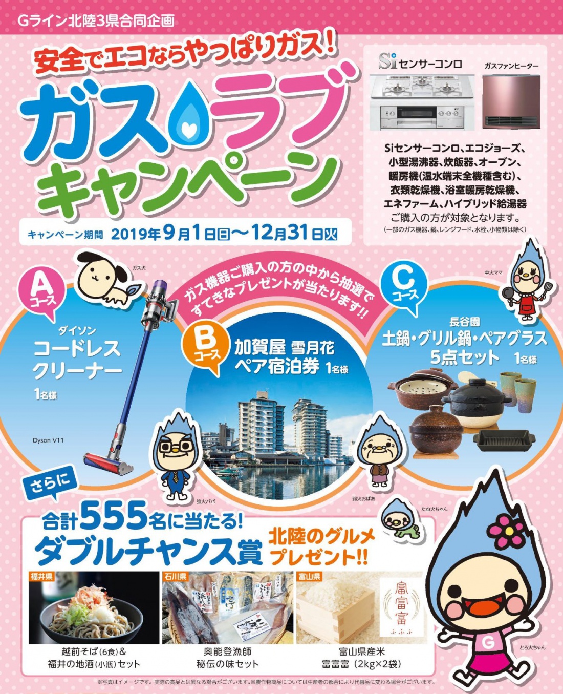 キャンペーン期間中、Gライン加盟店でガス機器をご購入いただいた方に、抽選でステキなプレゼントが当たります。